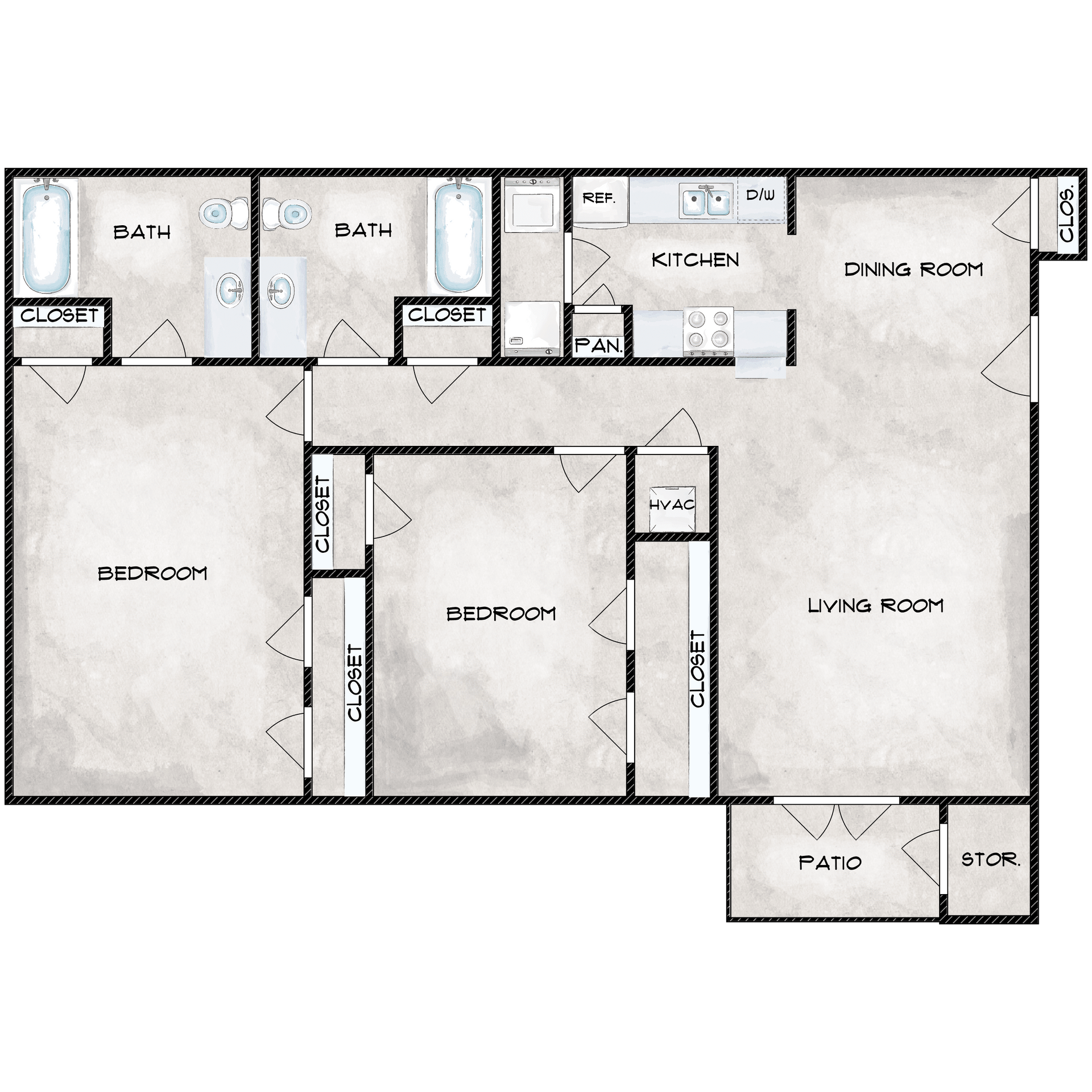 Our two-bedroom apartments include storage closets, helping residents keep belongings organized while maximizing living space.